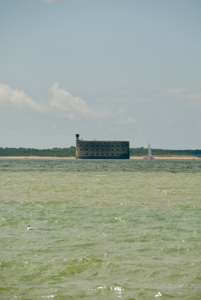 Vous avez aussi, en face de Rochefort (en face de Fouras-les-Bains très exactement) et accessible en ferry, l’île d’Aix et l’île d’Oléron. Nous avons choisi avec les filles de visiter l’île d’Aix, en y louant des vélos pour la journée. On a pris la compagnie FOURASAIX avec un départ à 8h30 du matin, pour avoir une bonne grosse journée sur l’île. C’était super ! L’île est magnifique, assez étendue quand même pour bien profiter du vélo, mais assez petite pour tout voir et avoir le temps de s’arrêter tranquille à la plage pour quelques ploufs !