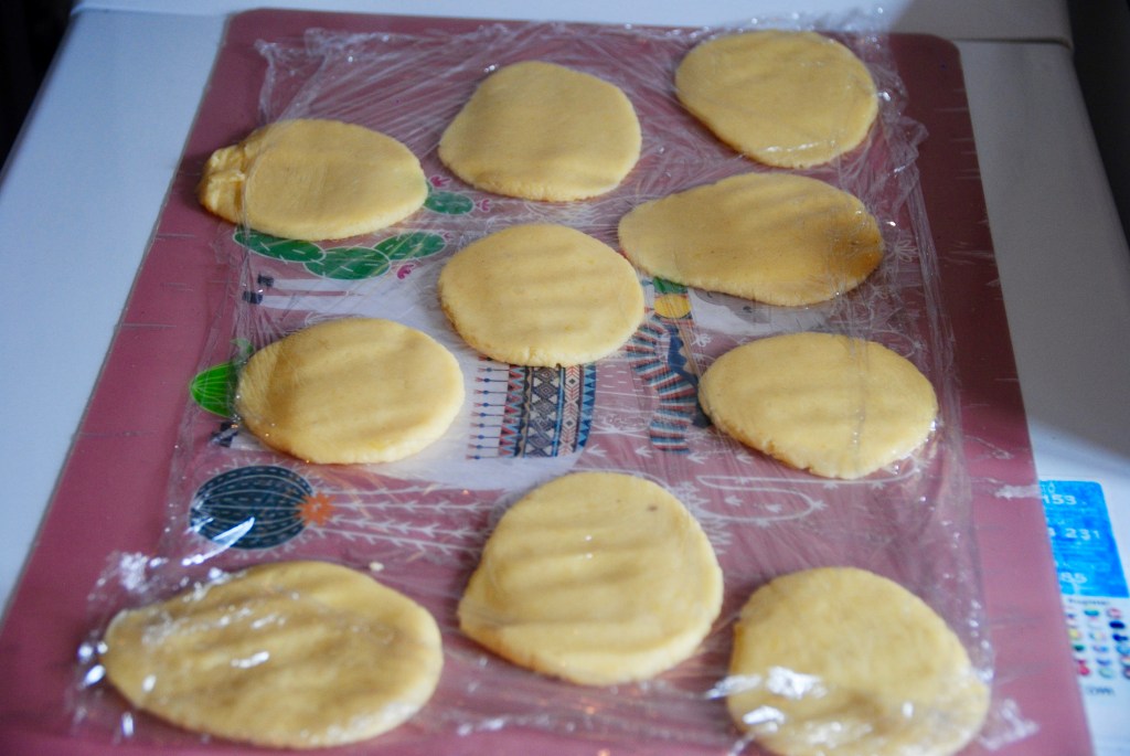 4/ Formez des petites boules de pâtes sur une plaque puis étalez-les un petit peu au rouleau et réservez le tout au frigo.