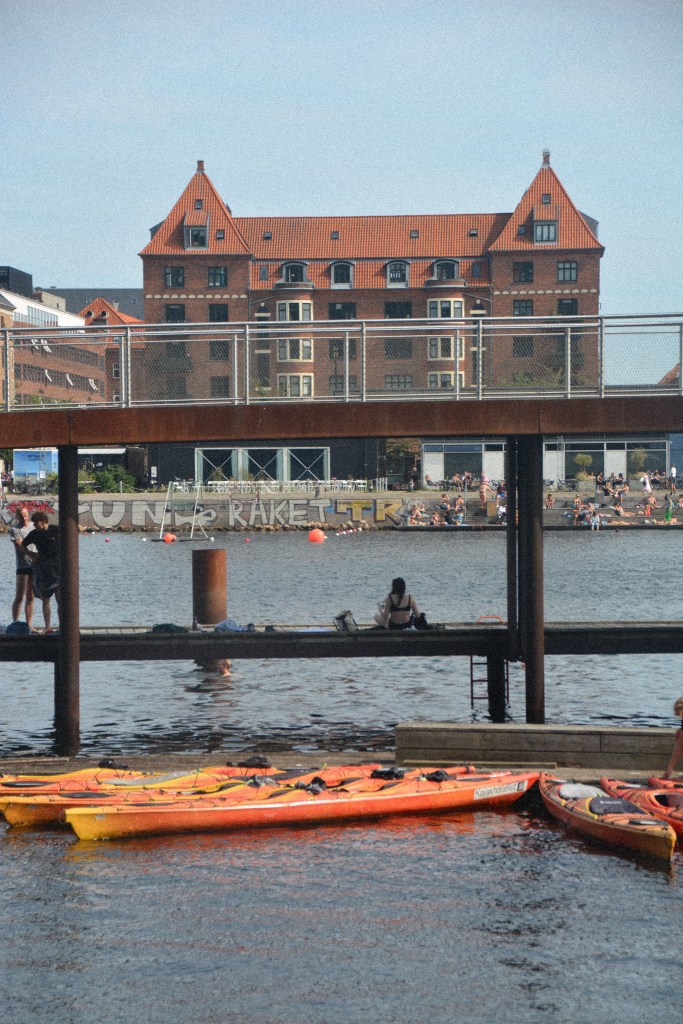 On s’est ensuite baladé dans les différents quartiers du centre, jusqu’aux fameuses maison colorées, le quartier Nyhavn, pour prendre une ligne de bateau qui monte vers le nord de la ville. On s’est posé au soleil sur des pontons pour faire un plouf et se rafraichir en milieu d’après-midi.