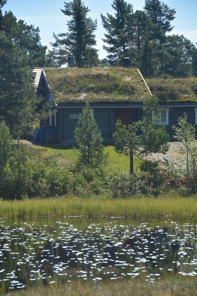 On a découvert le côté nature de la Norvège, ses lacs magnifiques, ses forêts… Le trajet était fabuleux !! Et après plusieurs heures de route, et quelques lacets de montagne, nous arrivons à…. un péage ! Notre chalet est en fait dans une sorte de zone « protégée », isolée et avec une seule et unique route pour faire le tour de tous les chalets du « lotissement ».
