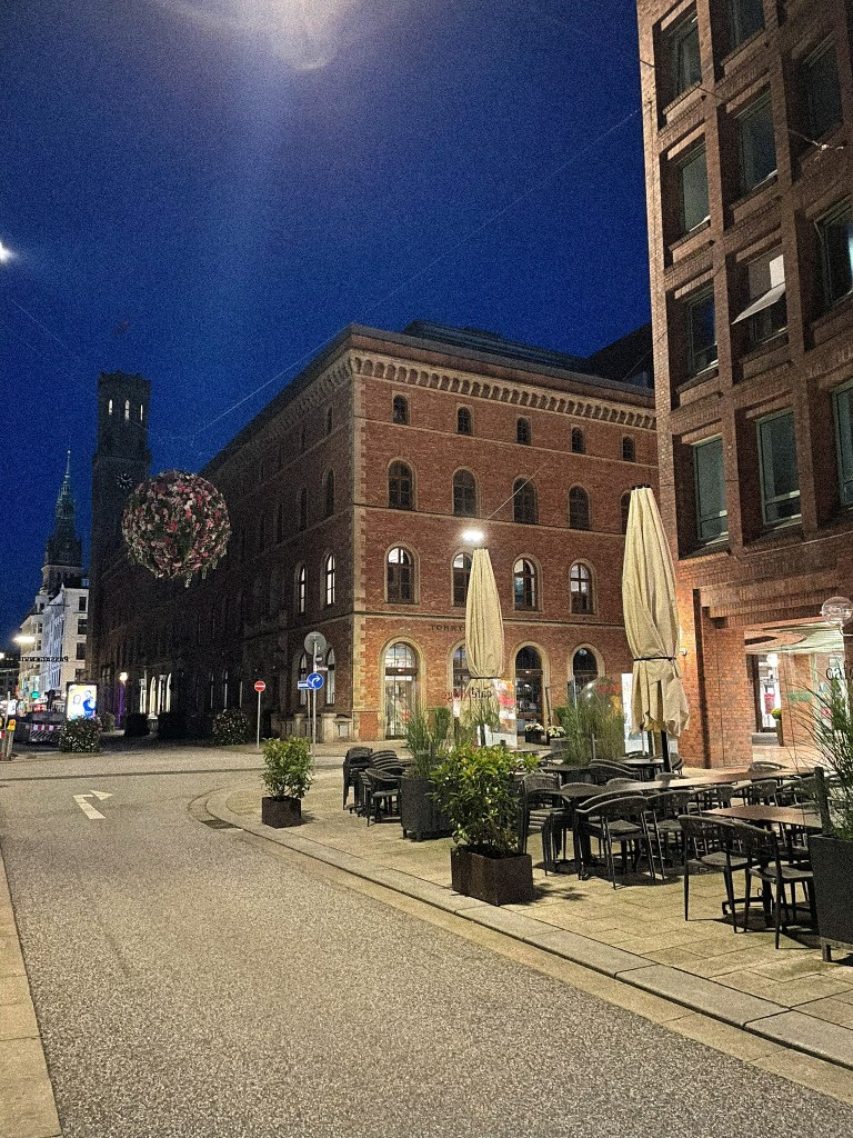 Déjà les routes allemandes… Il faut en parler s’il vous plait ! QUE DES TRAVAUX tout le temps !! Et des abrutis qui roulent à 250 kms à fond sur la voie de gauche donc pour doubler c’est l’enfer. Bref, en plus un voyant s’est très vite allumé sur la voiture, qui nous obligeait à rouler à max 120kms… Je vous raconte pas la galère ! On a mis 10h au lieu de 7h, on est arrivé épuisé à Hambourg. Les vacances commençaient bien haha.