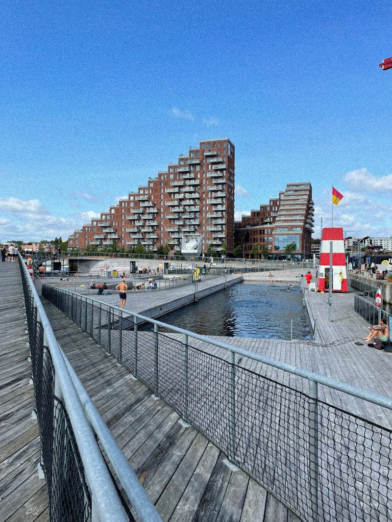 Après 5 jours de Télémark, on était bien content de revenir à la civilisation, finalement. On a pris un ferry pour le retour, de Kristiansand, une ville côtière au sud de la Norvège, jusqu’en haut du Danemark, à Hirtshals. Le trajet dure 4h et c’est environ 150€ pour 2 avec un véhicule. Après le ferry, on a roulé encore 2h pour arriver jusqu’à Aarhus, une autre grande ville côtière au Danemark. J’ai eu un gros gros coup de cœur pour cette ville ! C’est une mini Copenhague, avec plusieurs quartiers différents, un port où on peut se baigner ; le centre ville est super mignon et les gens sont gentils ! C’est bref mais très chouette 😀