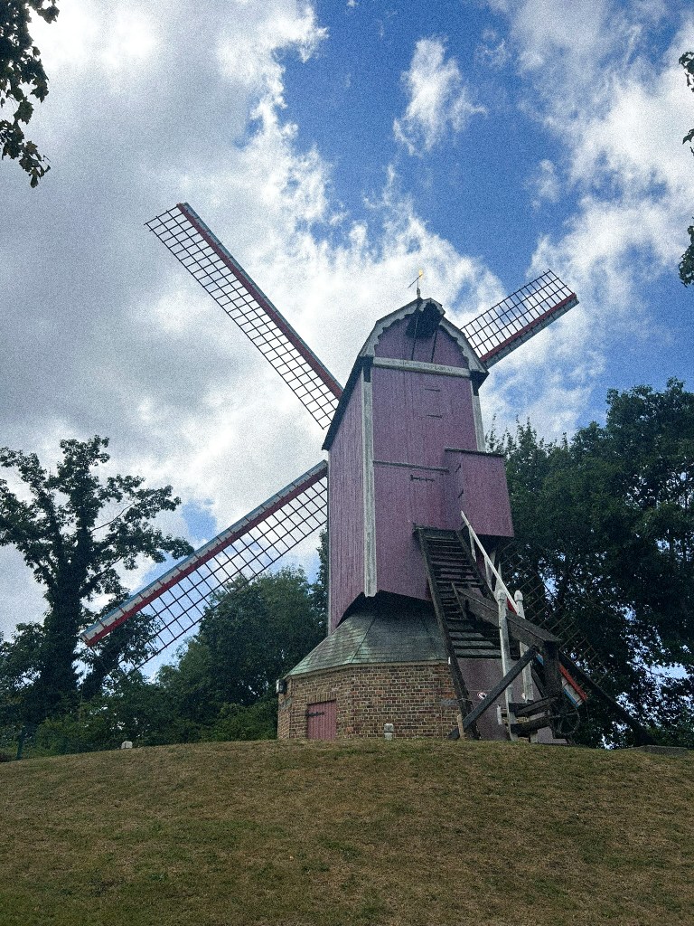 Après une bonne averse, nous avons été louer des vélos pour découvrir les alentours de la ville : le lac Minnewaterpark, faire la balade le long du canal à l’est de la ville jusqu’aux moulins, en passant par Kruistpoort. Nous sommes ensuite redescendu par le quartier Saint-Anne.