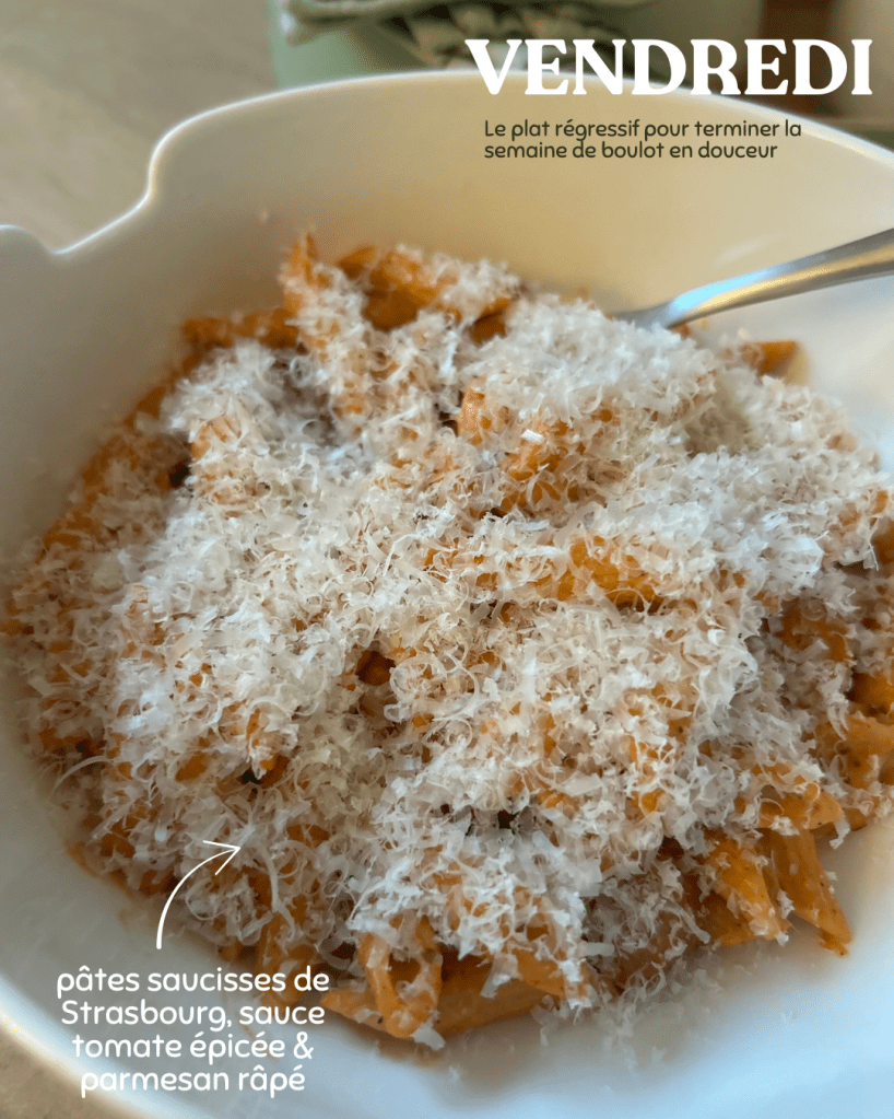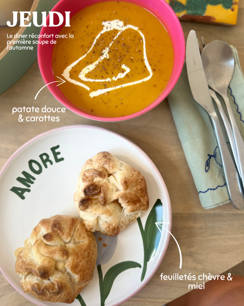Pour m’aider à trouver des idées de repas et de plats, j’utilise le site Jow, en plus de Tik Tok. C’est un site super bien fait où vous pouvez rentrer différents critères (préférences alimentaires, équipements de votre cuisine, allergies, régimes particuliers, nombre de personnes et de repas, etc.) et il vous concocte une semaine de repas. Vous avez ensuite la liste de course et les recettes associées.