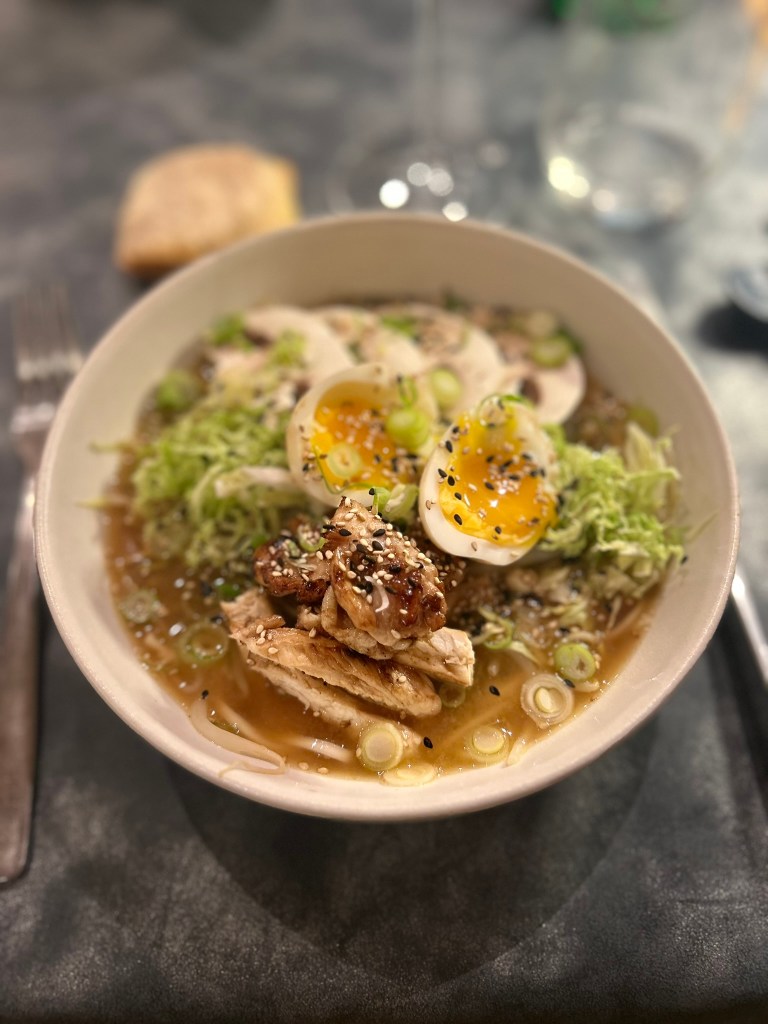 Seul petit bémol : peut-être un manque de peps dans l’assaisonnement, que ce soit le bouillon du ramen, ou le sésame noir… J’ai eu l’impression que les curseurs de goût avaient été baissés pour s’adapter à la clientèle locale. Un peu dommage de ne pas y avoir été à fond dans l’alliance japon-montagne…