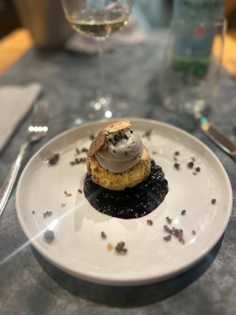 Ce chef possède un restaurant étoilé à Fontainebleau, et signe aussi la carte de ce restaurant à Pralognan-La-Vanoise. Il y propose une carte courte, avec ses plats signatures, mêlant spécialités japonaises et touches savoyardes, pour proposer des plats d’une qualité bistronomique équilibrés et très originaux. Des oeufs onsen en entrée, du cerf en plat ou encore 3 sortes de ramen différentes… Tout est raffiné et bien présenté ! J’ai aussi beaucoup aimé la carte des desserts : un entremets pistache-framboise et un chou sésame noir-myrtille, pas meilleur mix entre l’Asie et la Savoie !